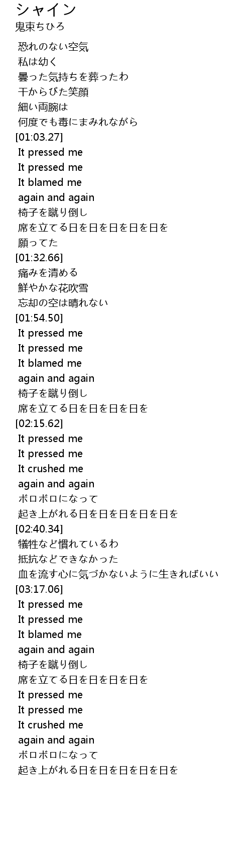| [03:07.10] | 血を流す心に気づかないように生きればいい |