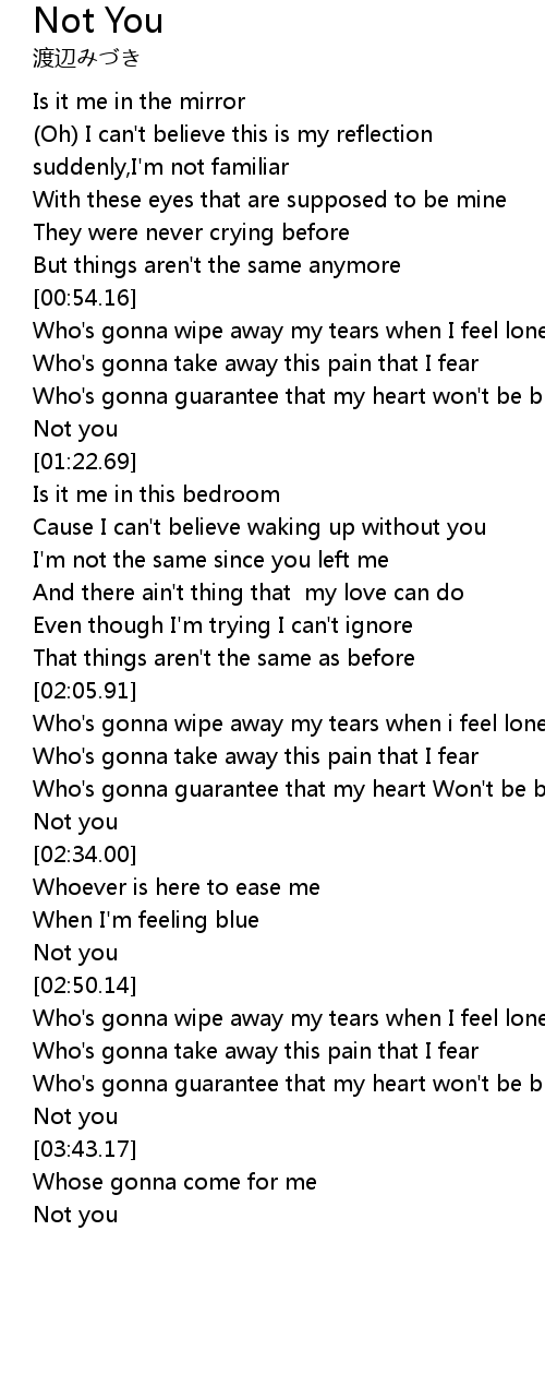 | [00:55.06] | Who's gonna wipe away my tears when I feel lonely |