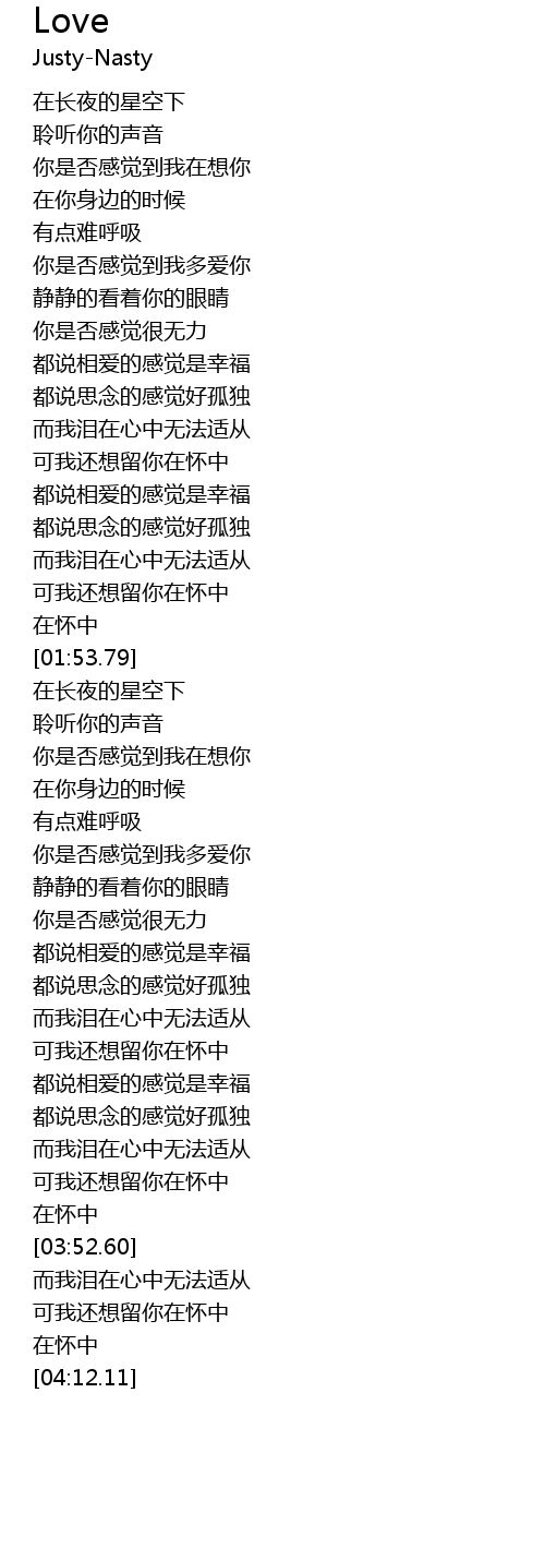 | [00:37.24] | nǐ shì fǒu gǎn jué dào wǒ duō ài nǐ |