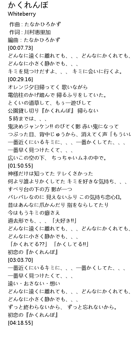 | [04:13.09] | 初恋の『かくれんぼ』 |