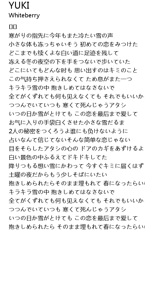 | 降りつもる想い雪にかわって 今すぐキミに届くはず | |