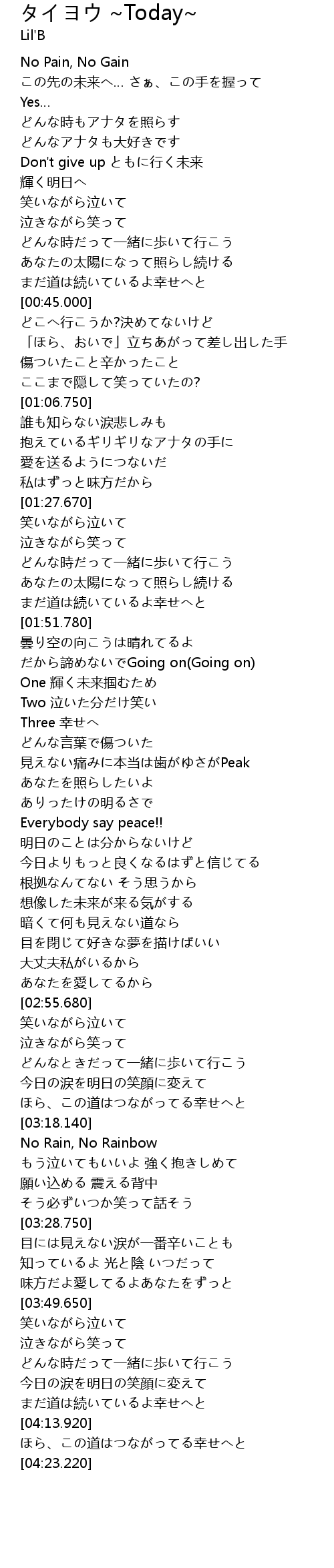 | [01:45.690] | まだ道は続いているよ幸せへと |