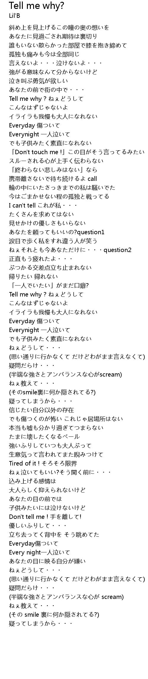 | Tell me why ? ねぇどうして | |