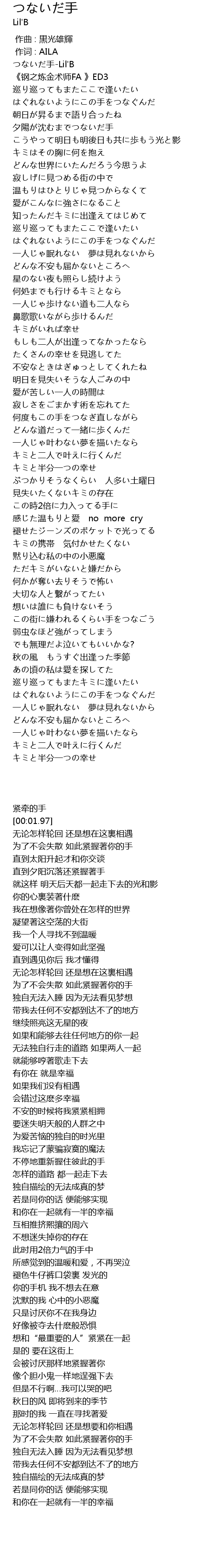 | [00:10.69] | はぐれないようにこの手をつなぐんだ |