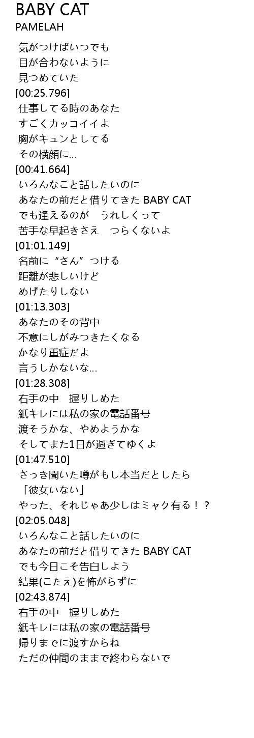 | [02:32.904] | あなたの前だと借りてきた BABY CAT |
