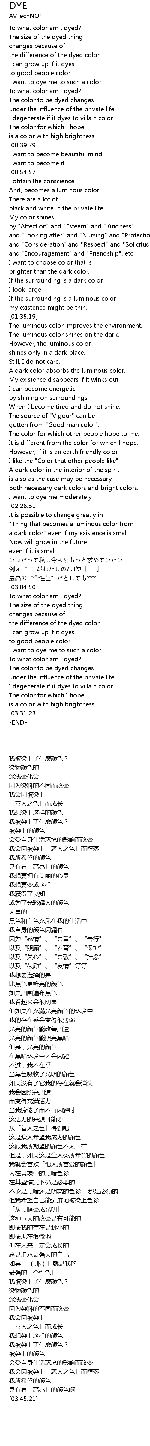 | [03:17.18] | To what color am I dyed? |