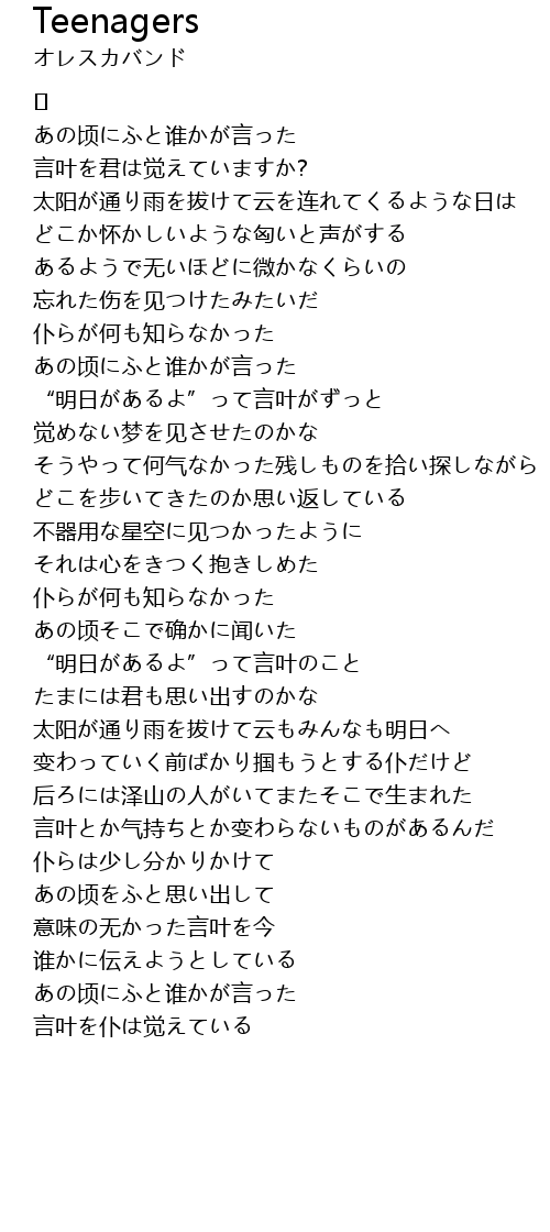 | 歌曲 | Teenagers |