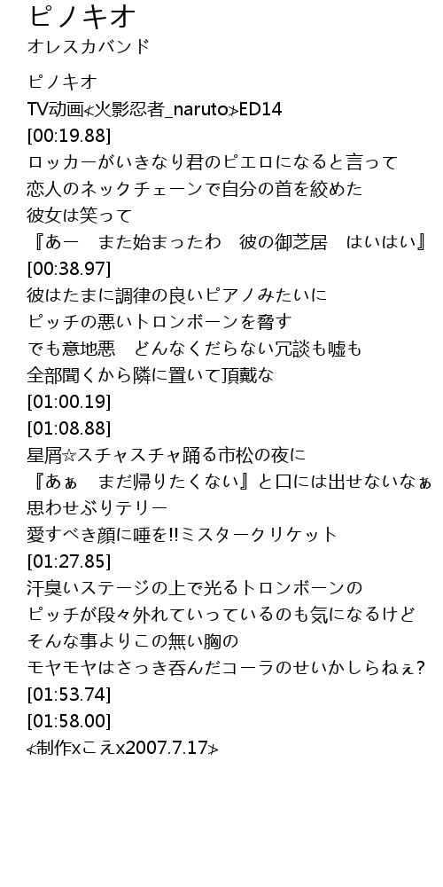 | [00:00.00] | ピノキオ |