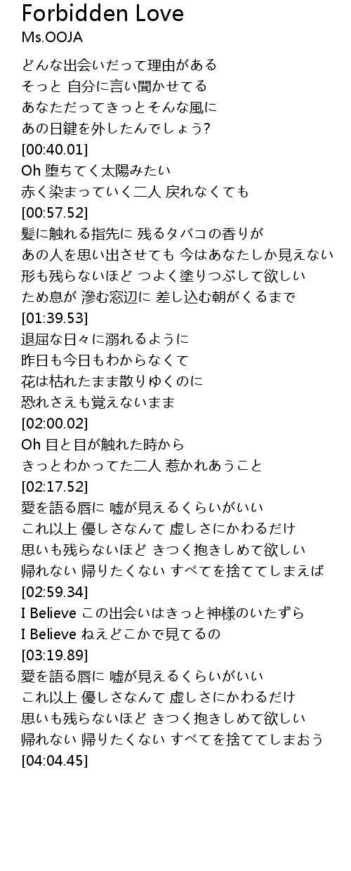 | [03:00.52] | I Believe この出会いはきっと神様のいたずら |