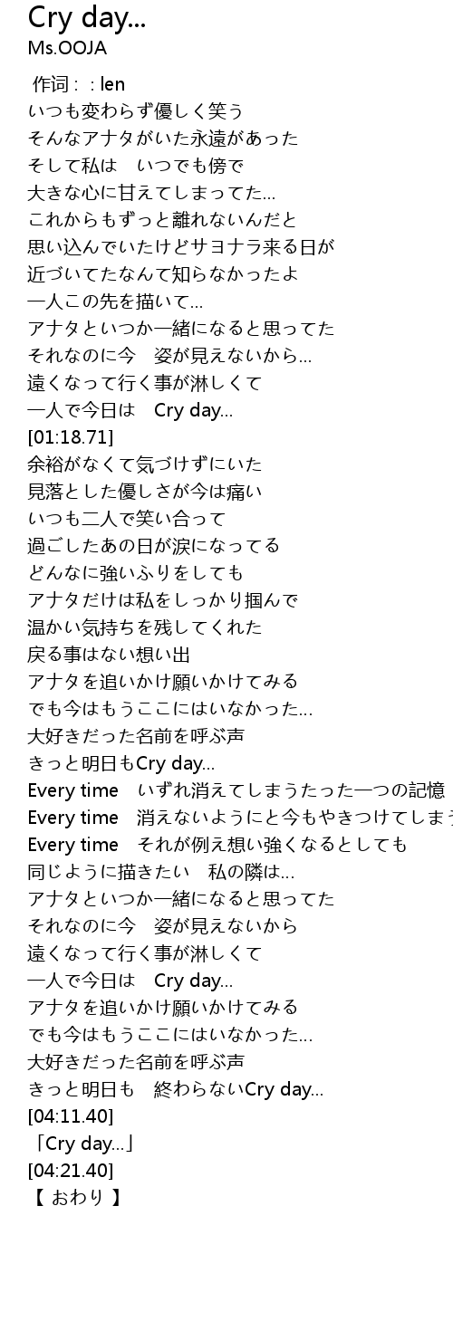 | [03:59.10] | きっと明日も 終わらないCry day... |