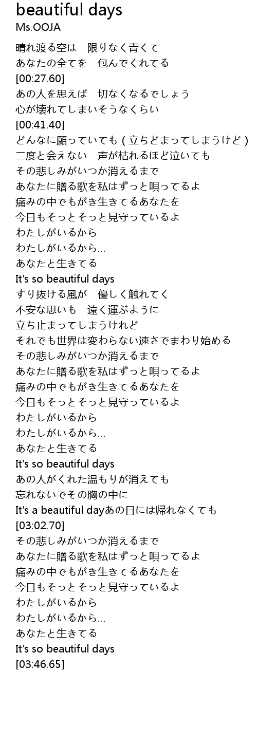 | [02:55.13] | It's a beautiful dayあの日には帰れなくても |