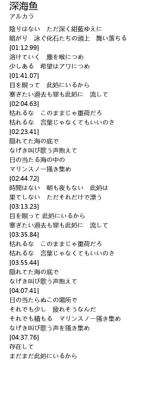 | [01:01.04] | 暗がり 泳ぐ化石たちの頭上 舞い落ちる |