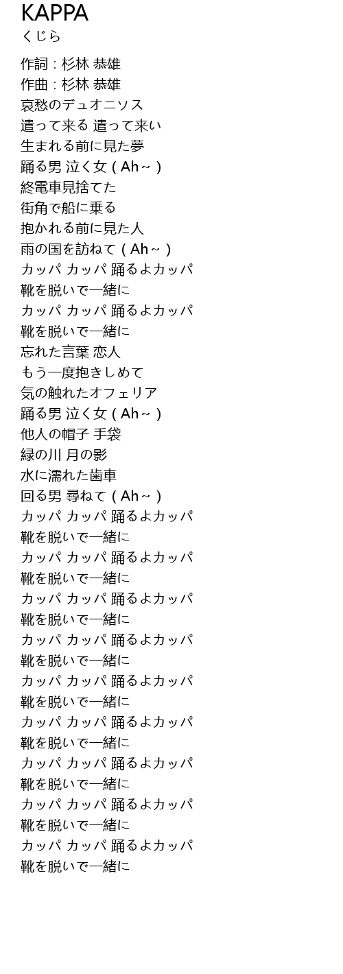 | [04:26.084] | カッパ カッパ 踊るよカッパ |