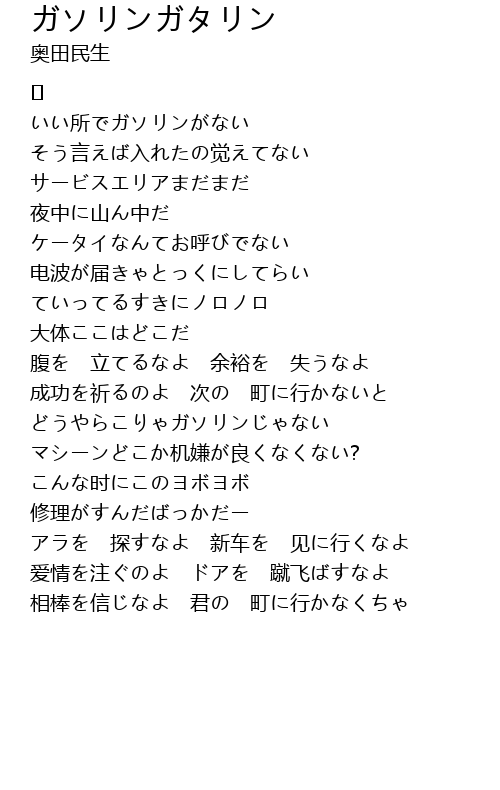 | 歌曲 | ガソリンガタリン |