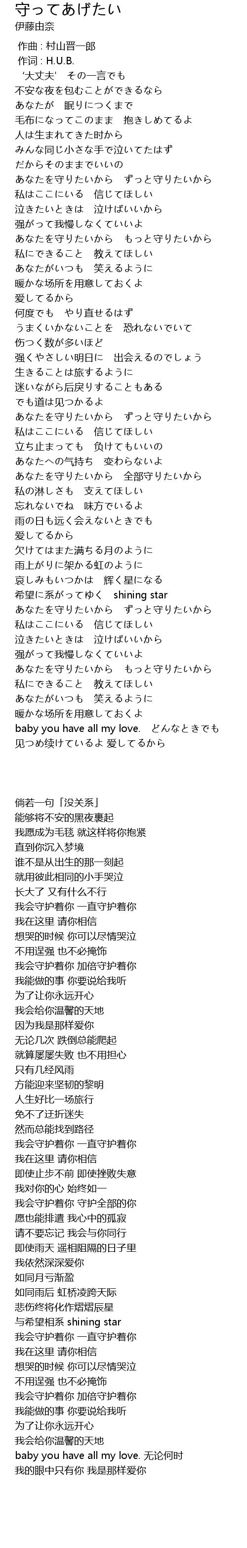| [02:43.0] | 我会守护着你 一直守护着你 |