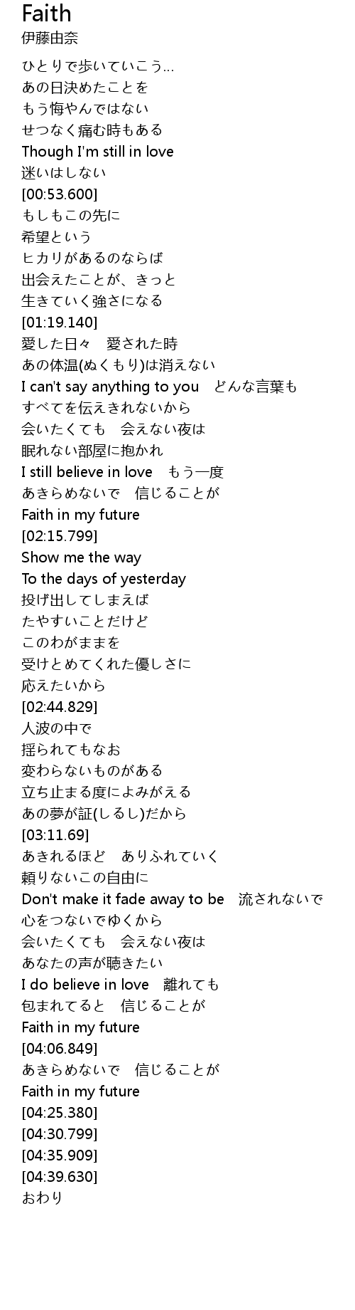 | [04:03.999] | Faith in my future |