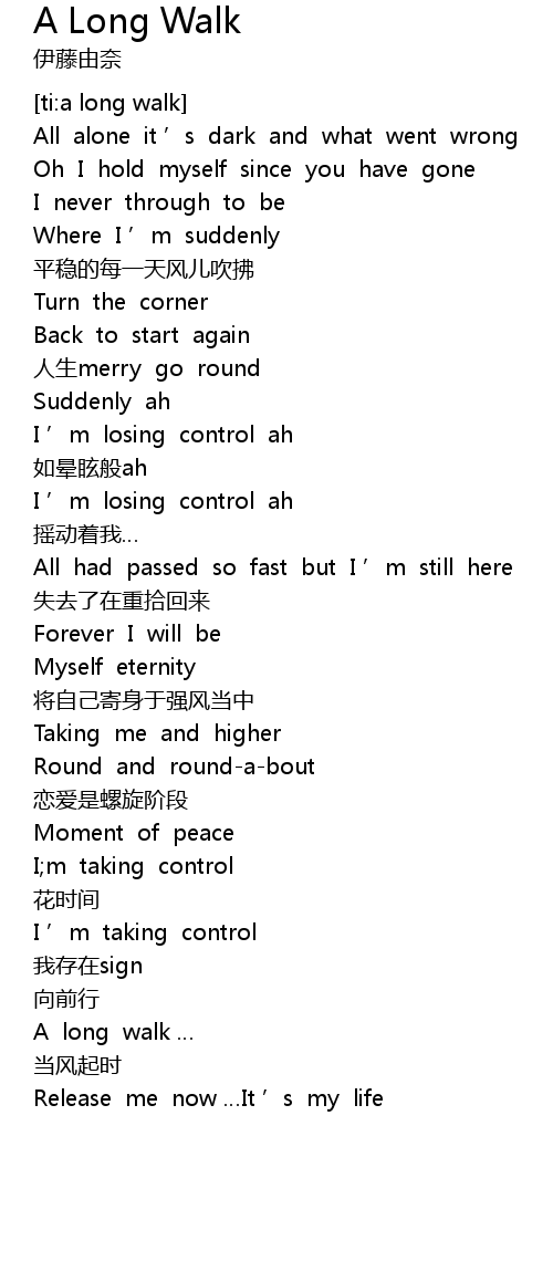 | [02:00.314] | All had passed so fast but I ’m still here |