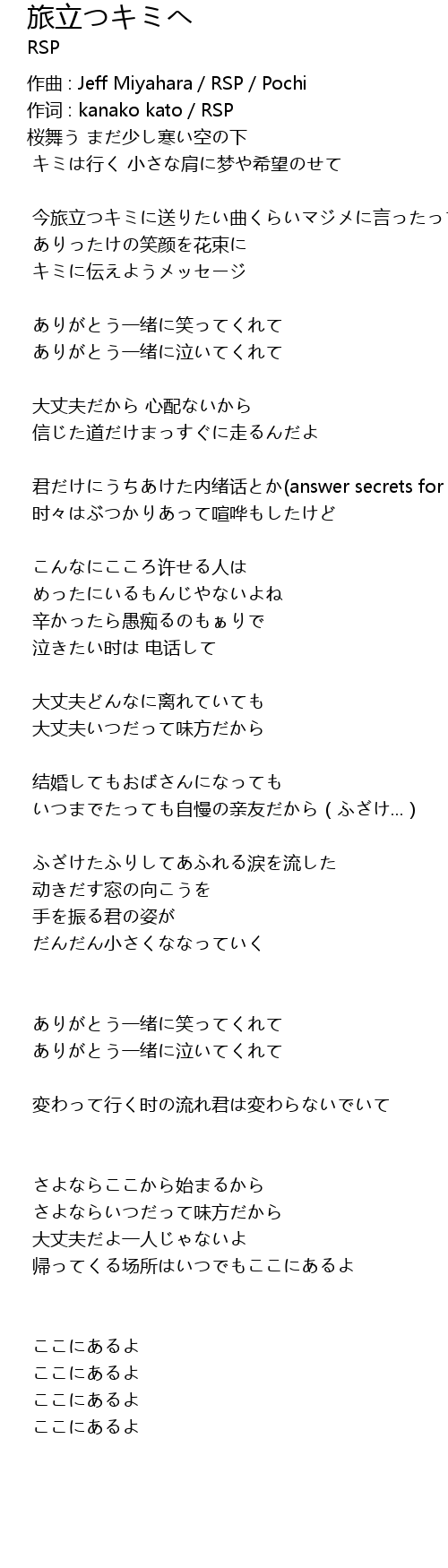 | 作词 : kanako kato/RSP | |