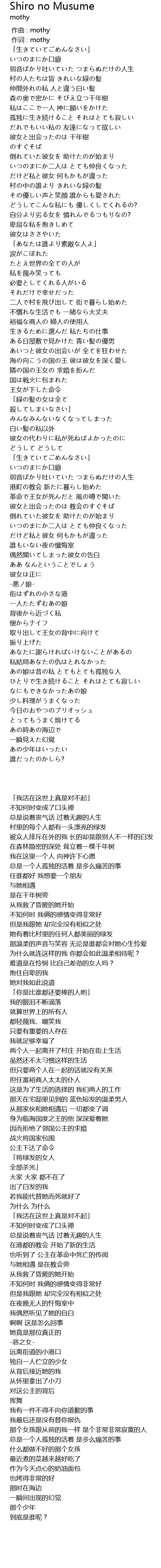 | 歌曲 | Shiro no Musume |