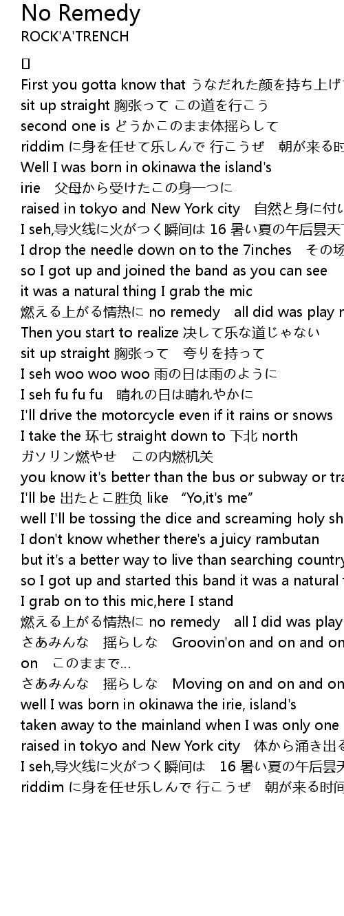 | 歌曲 | No Remedy |