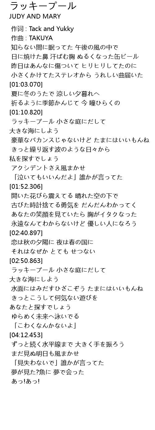 | [03:36.524] | ラッキープール 小さな庭にだして 大きな海にしよう |