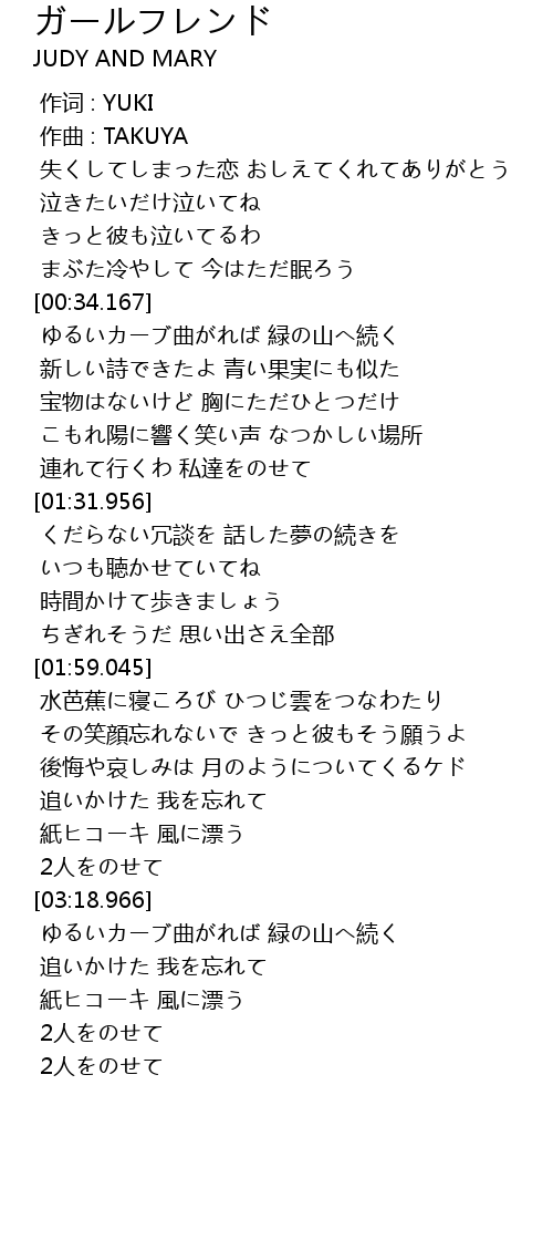 | [00:00.000] | 作词 : YUKI |