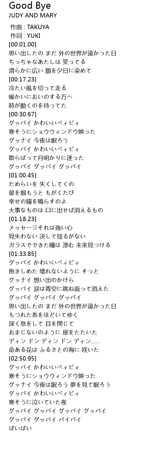 | [03:16.36] | グッバイ グッバイ グッバイ グッバイ |