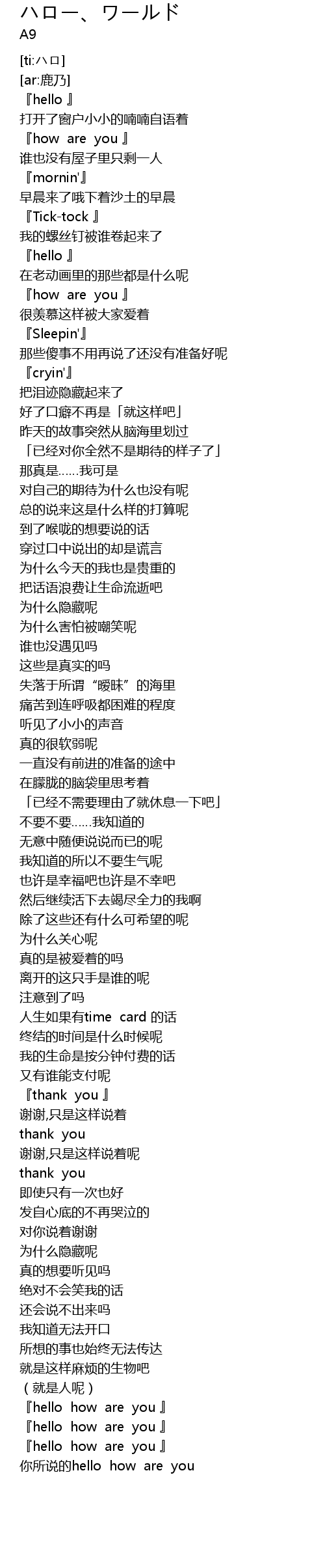 | [04:34.03] | 你所说的hello how are you |