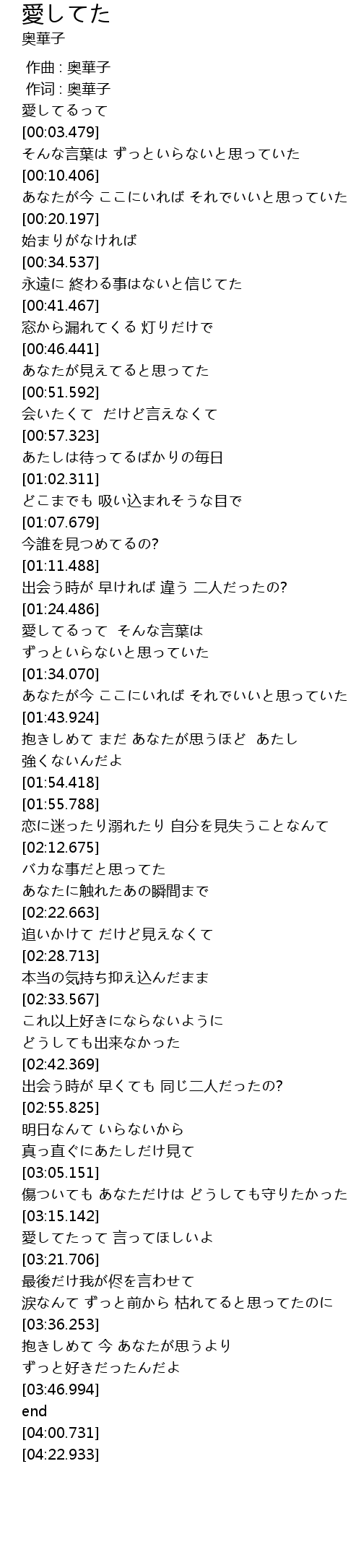 | [03:16.473] | 愛してたって 言ってほしいよ |