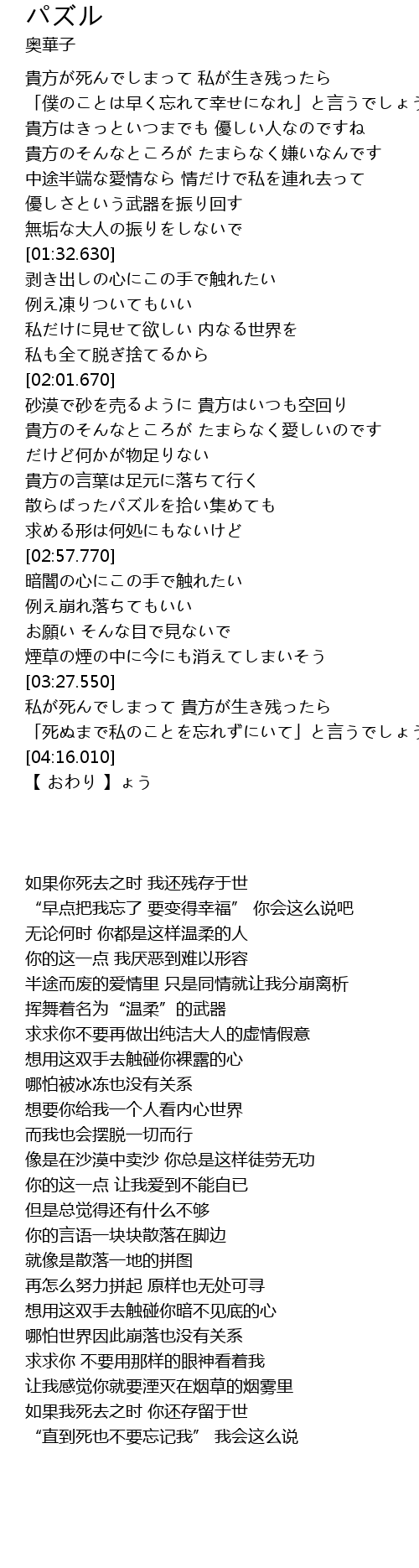 | [00:00.900] | 貴方が死んでしまって 私が生き残ったら |