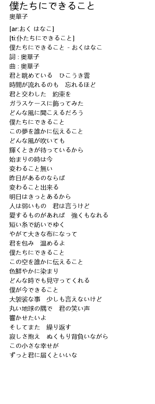 | [00:00.50] | 僕たちにできること - おくはなこ |
