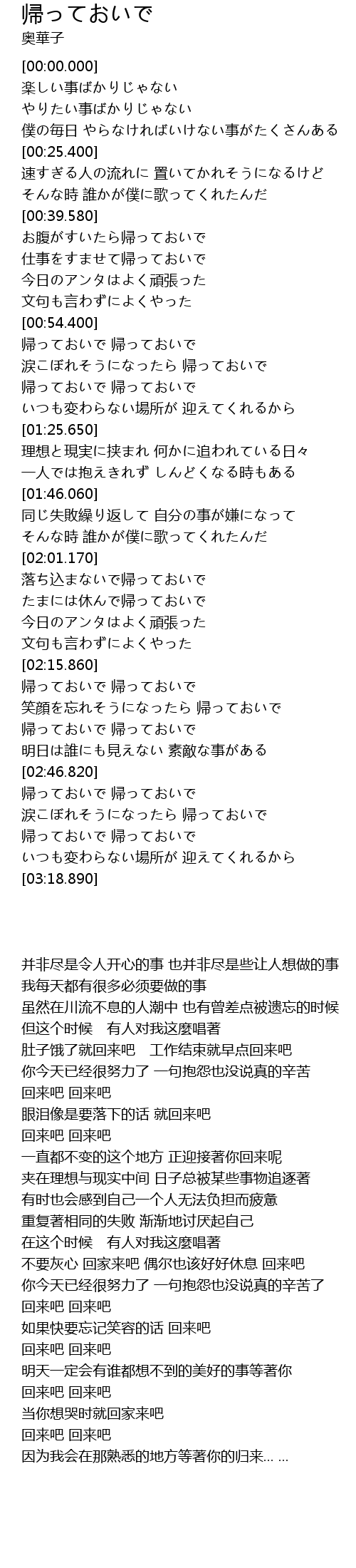 | [03:00.950] | 帰っておいで 帰っておいで |