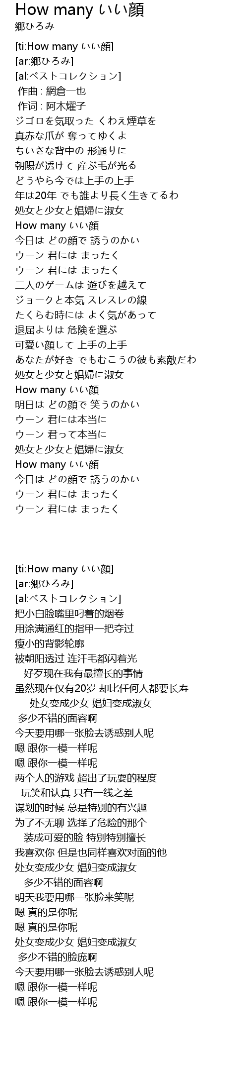 | [ti:How many いい顔] | |