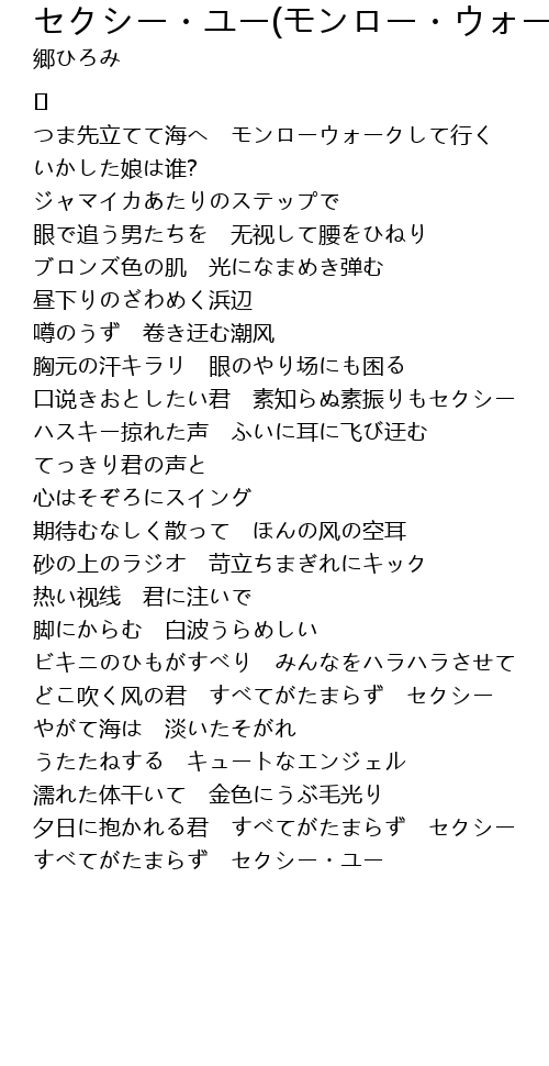 | 歌曲 | セクシー・ユー(モンロー・ウォーク) |