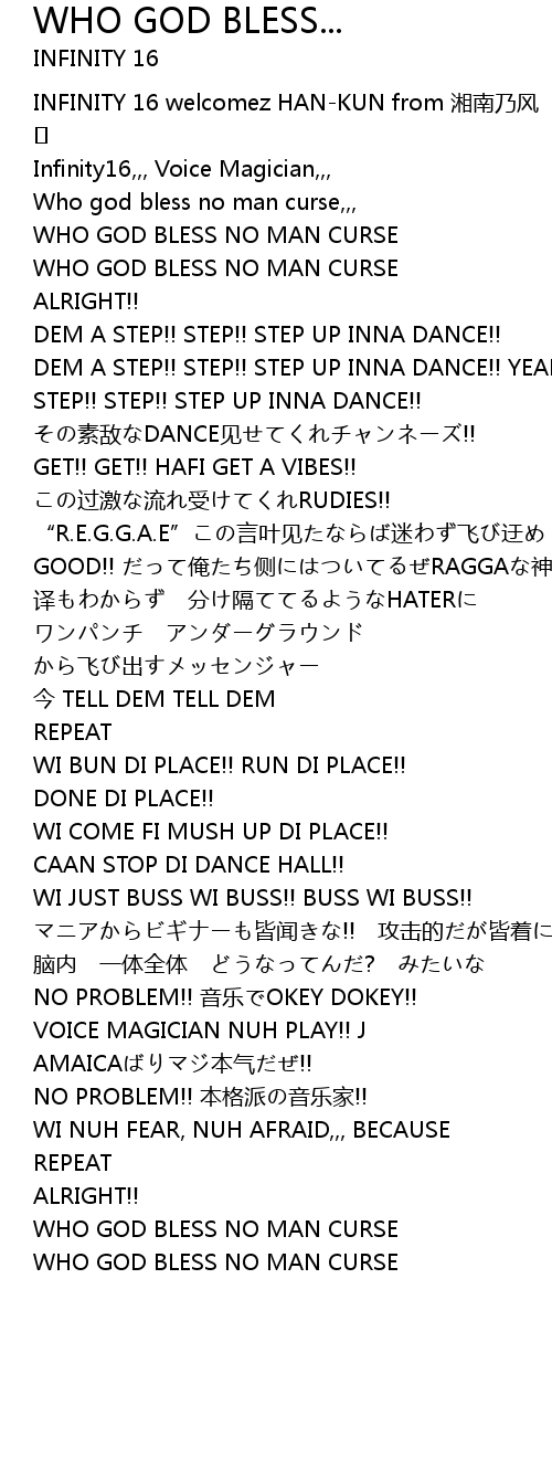 | INFINITY 16 welcomez HAN-KUN from 湘南乃风 | |