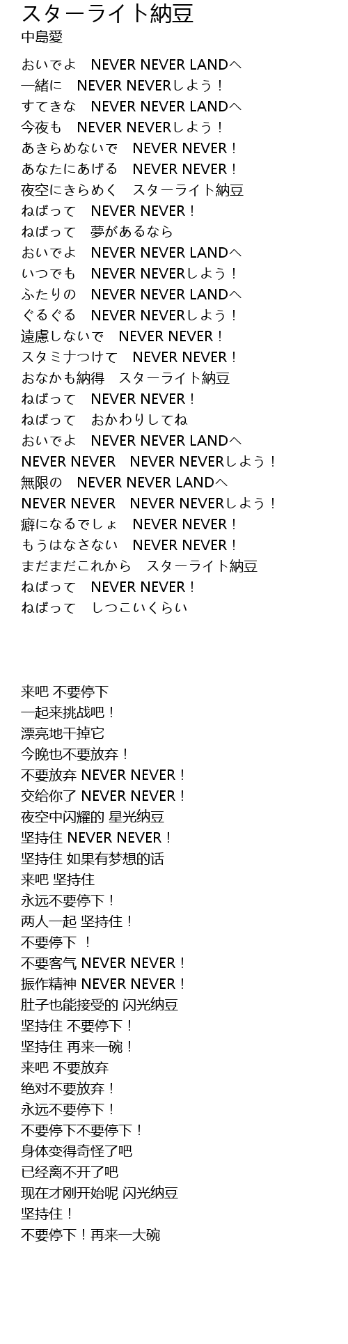 | [01:33.54] | まだまだこれから スターライト納豆 |