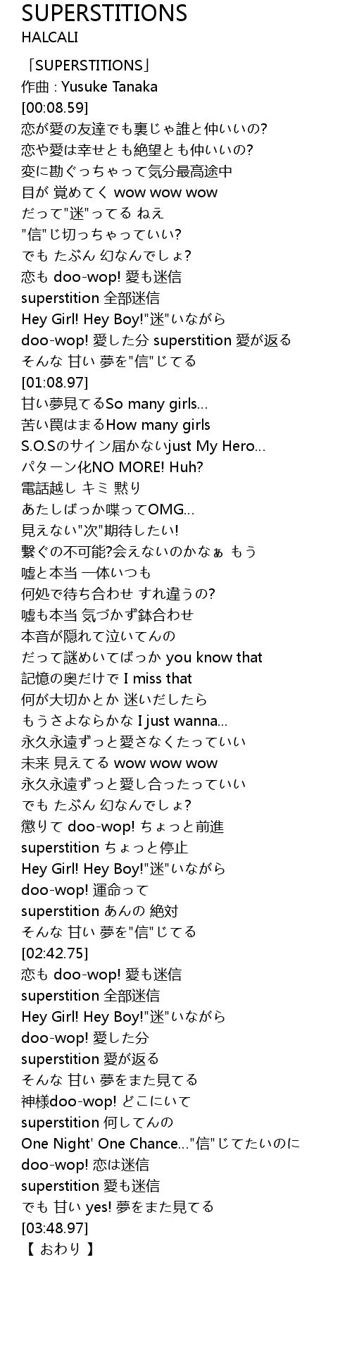 | [00:00.00] | 「SUPERSTITIONS」 |
