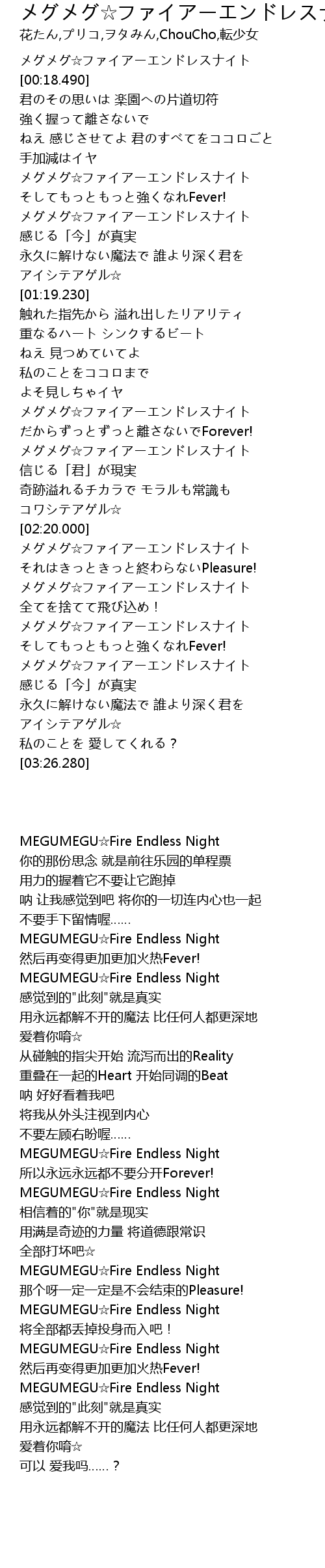 | [03:05.690] | MEGUMEGU☆Fire Endless Night |
