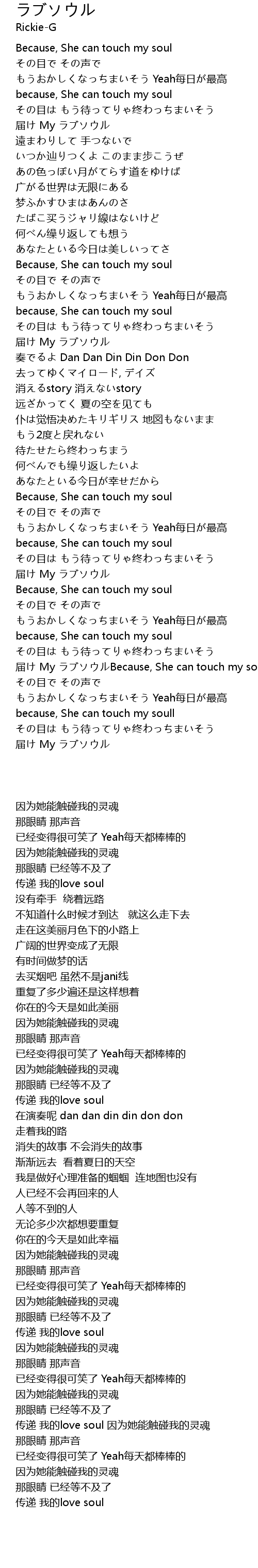 | [04:07.02] | 届け My ラブソウルBecause, She can touch my soul |