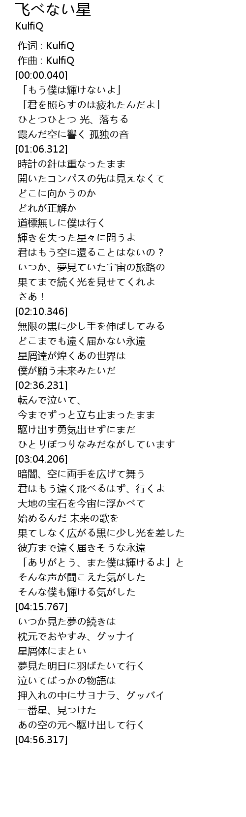 | [04:36.013] | 星屑体にまとい |