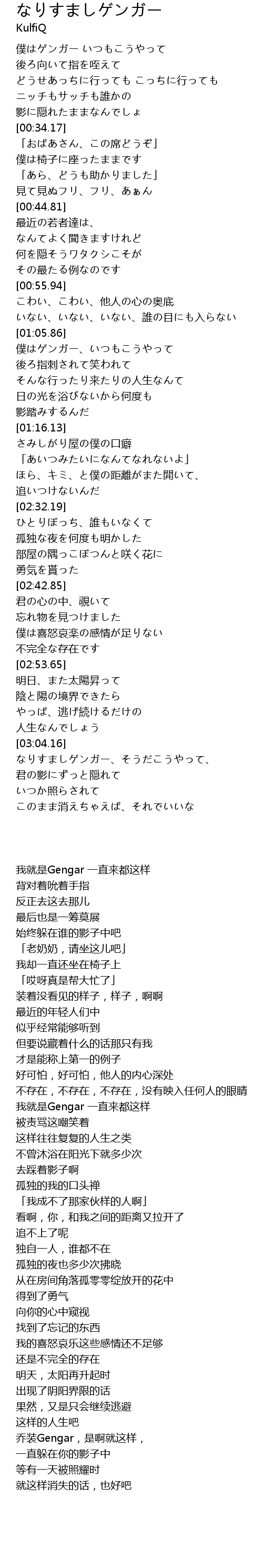 | [03:04.33] | なりすましゲンガー、そうだこうやって、 |