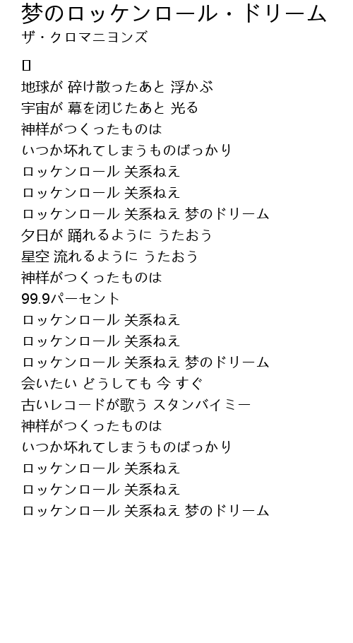 ロッケンロール 关系ねえ 梦のドリーム |