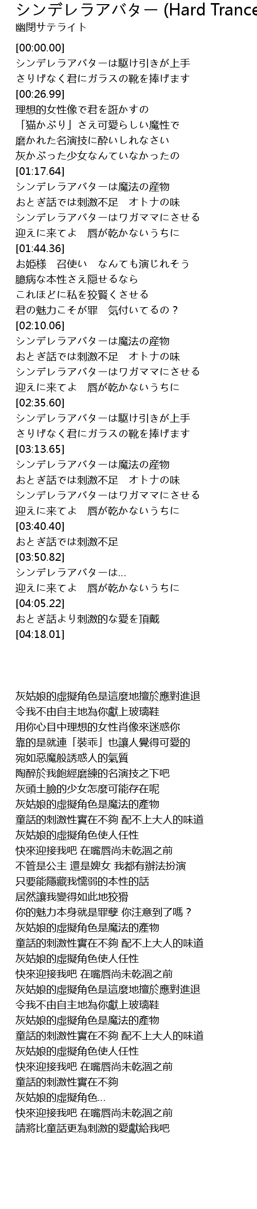 | [01:19.33] | シンデレラアバターは魔法の産物 |