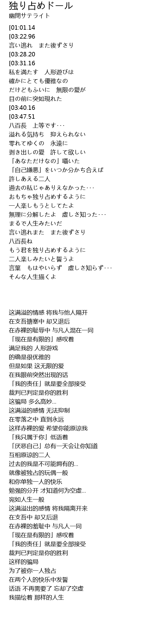 | [02:20.75] | 就像被独占的玩偶一般 |