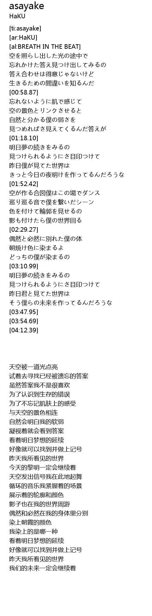 | 歌曲 | asayake |