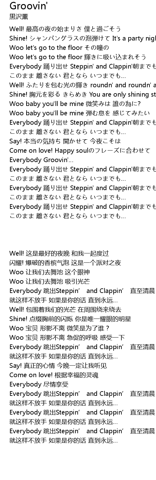 | [02:57.61] | Everybody 跳出Steppin’ and Clappin’ 直至清晨 |