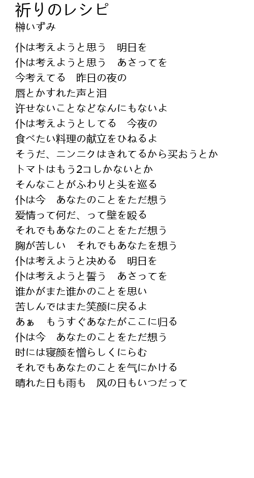 | 歌曲 | 祈りのレシピ |