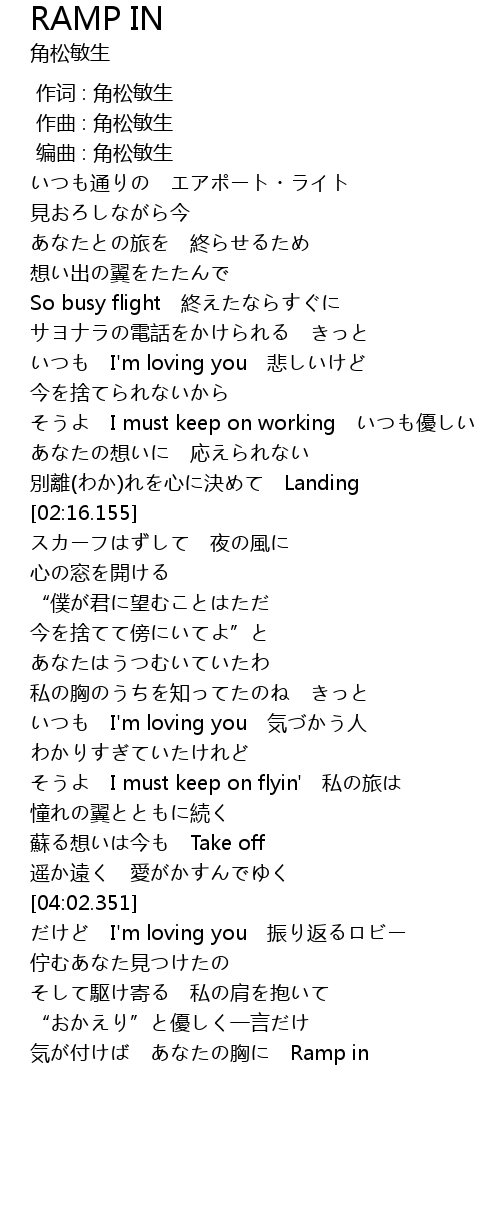 | [01:17.265] | So busy flight 終えたならすぐに |