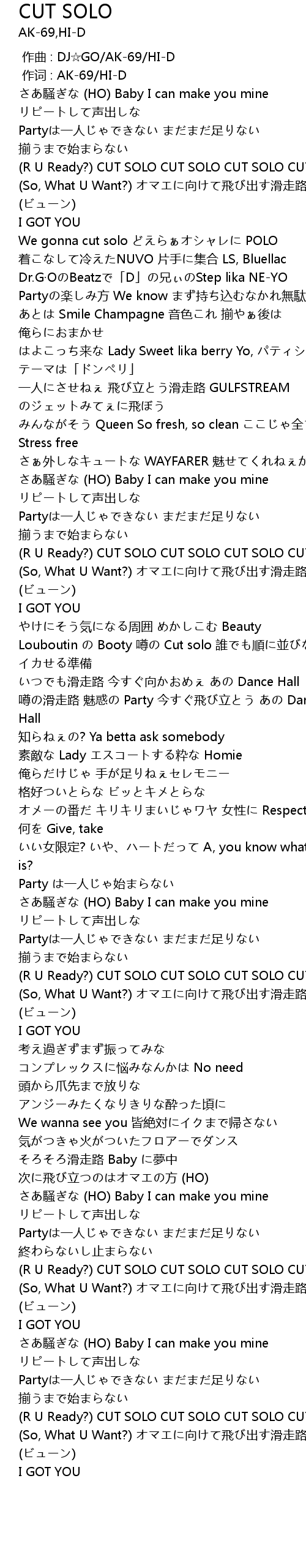 | [00:38.17] | (R U Ready?) CUT SOLO CUT SOLO CUT SOLO CUT SOLO |