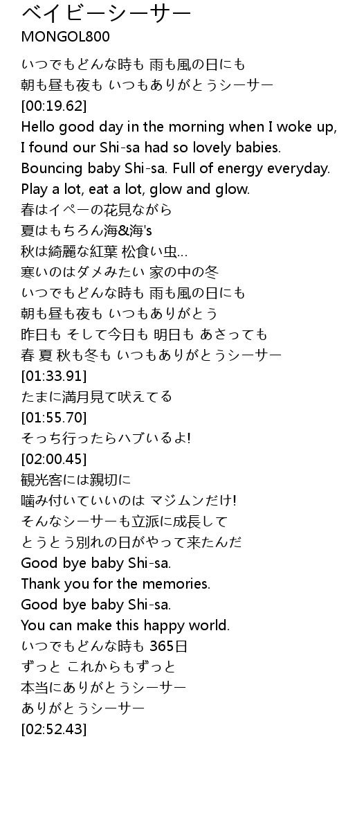 | [00:39.19] | Bouncing baby Shisa. Full of energy everyday. |